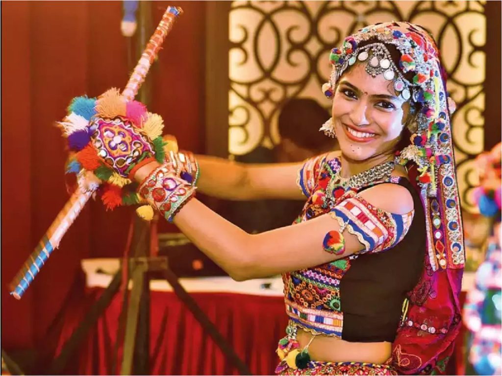 The Garba dance floor is a spectacle of colors, patterns, and intricate designs, thanks to the traditional attire worn by dancers.
