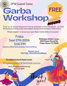 Get ready to dance your heart out at our *FREE Garba Workshop*! Whether you’re a beginner or a seasoned dancer, come learn the vibrant steps of Garba and Dandiya in a fun and energetic atmosphere.